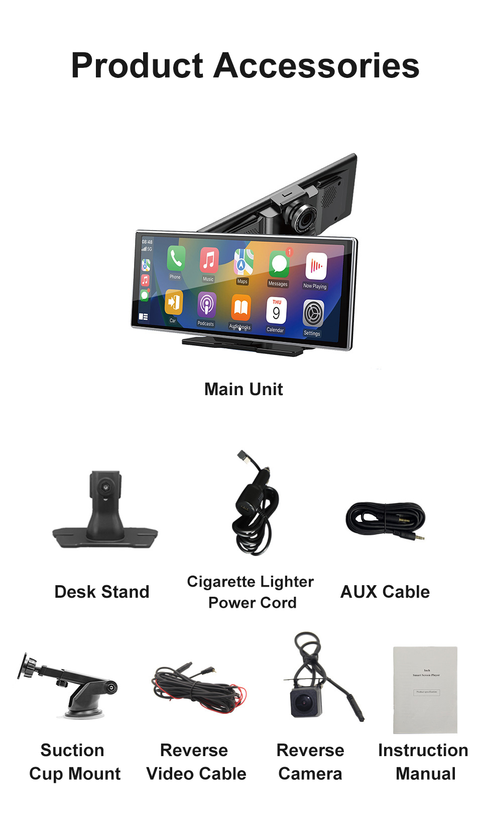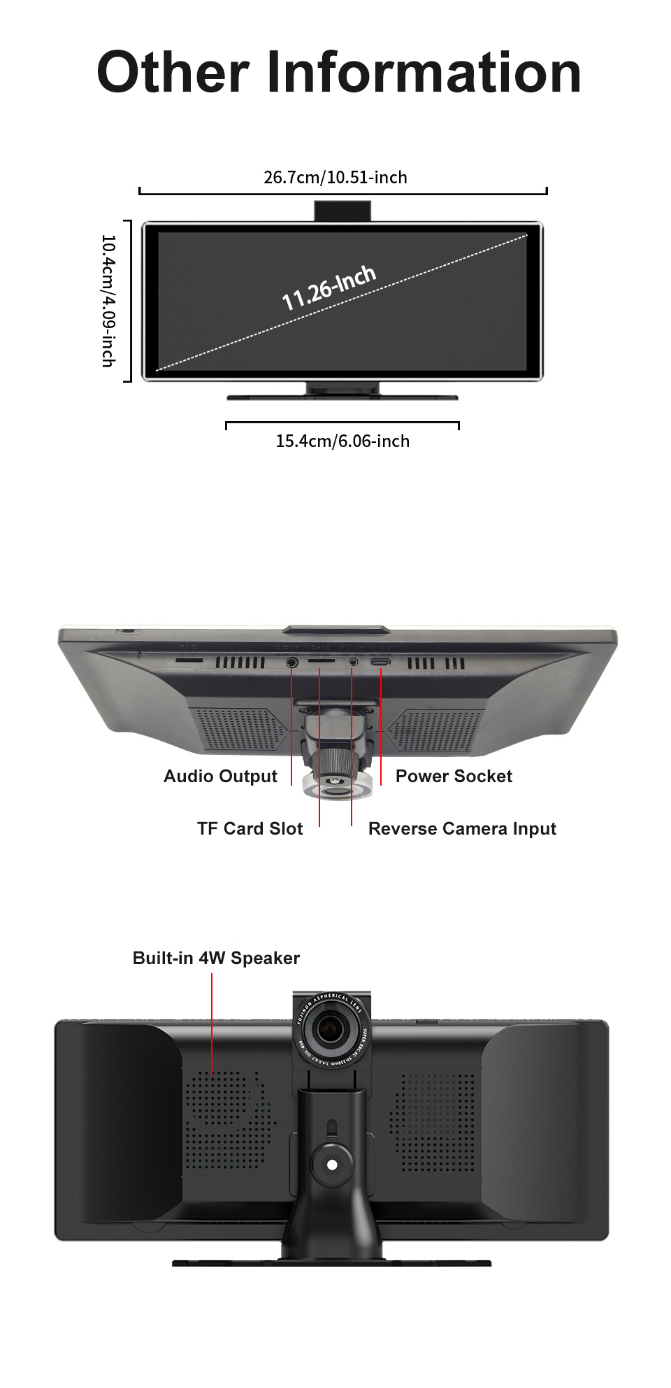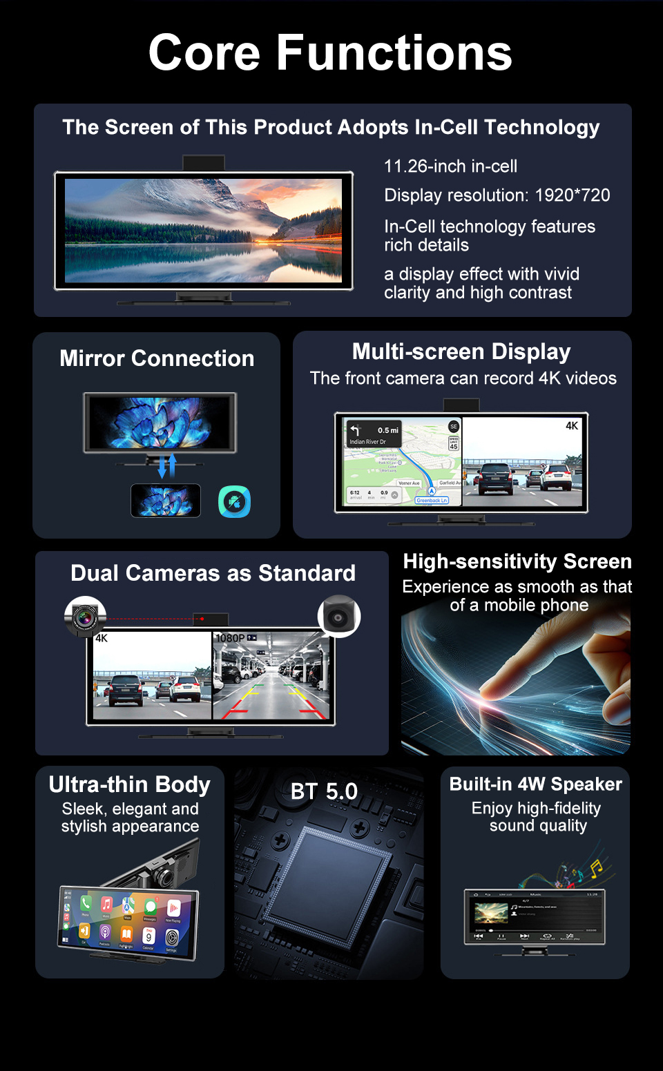 11.26” HD IPS Car Stereo with CarPlay 4K DashCam